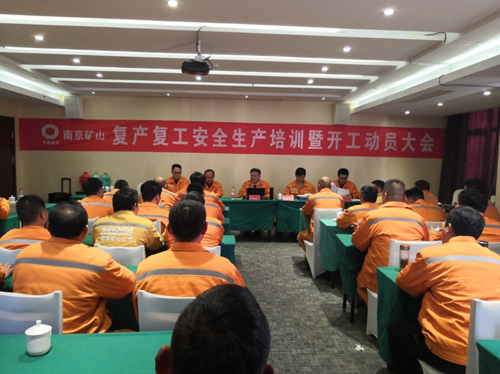 陽春布德澤,萬物生光輝。在春意盎然的三月,臺兒莊分公司的工程進度迎來嶄新的一頁。為了深入貫徹落實當?shù)貞?yīng)急管理部門文件精神,以及分公司制定的《2019年度安全教育培訓計劃》有關(guān)規(guī)定和要求,全面貫徹“安全第一,預(yù)防為主,綜合治理”的方針,認真開展非煤礦山安全生產(chǎn)教育培訓工作,切實做好3月13日開工生產(chǎn)投料工作,臺兒莊分公司于2019年3月11日-12日組織召開了全體員工復(fù)產(chǎn)復(fù)工安全生產(chǎn)培訓暨開工動員大會。