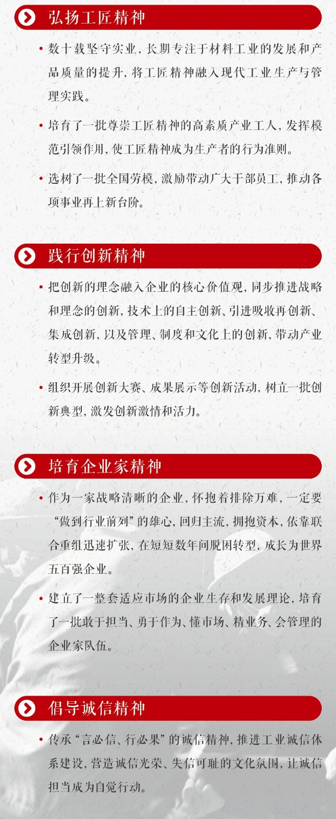 同時(shí)文化建設(shè)關(guān)乎企業(yè)發(fā)展和每位員工自身的幸福感。我們都是企業(yè)文化的親歷者、感受者,希望大家深度挖掘發(fā)生在身邊的文化故事,寫下你正在經(jīng)歷的與中國(guó)建材的不解之緣,表達(dá)你所充分認(rèn)同和愿意付出的點(diǎn)點(diǎn)滴滴,鞏固提升我們共同的文化成果。